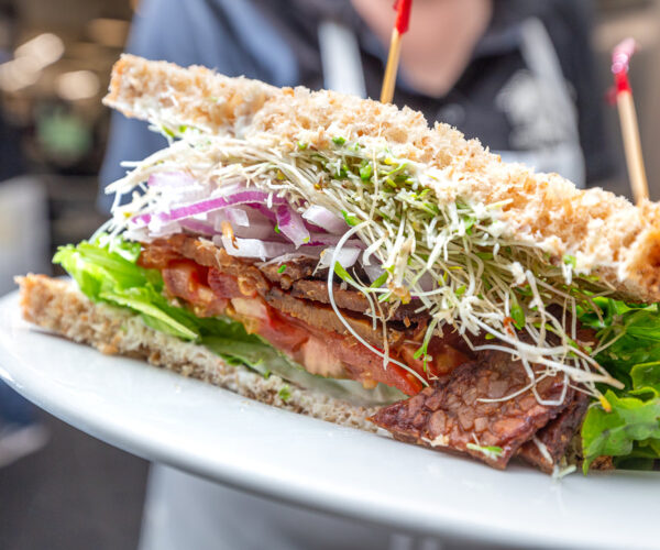 We have a beautiful in house Café that serves the most delicious sandwiches, salads, soups, and breakfast items. Additionally, you can find an incredible assortment of Organic Bagels, Muffins, Carrot Cake, and other desserts all made in house.